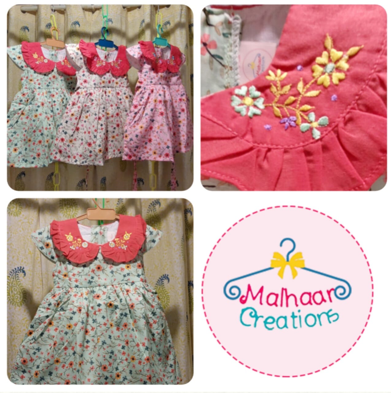 Affection reflects in the cuteness of dress. Soft cloth n pleasant colour combination . Thanks to Malhar Creations for your creativeness.