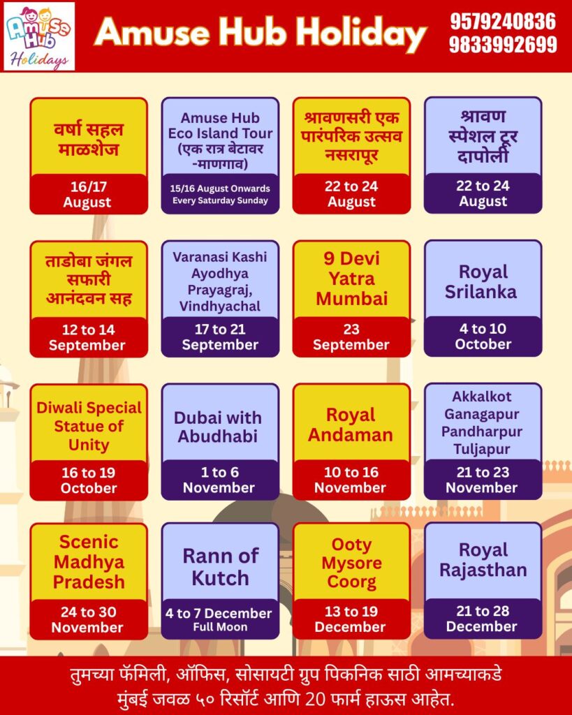 ५–६ जुलै २०२५ (शनिवार-रविवार) – वर्षा सहल, पनवेल, मुरुड, कोळवण, हडशी, पळसदेव